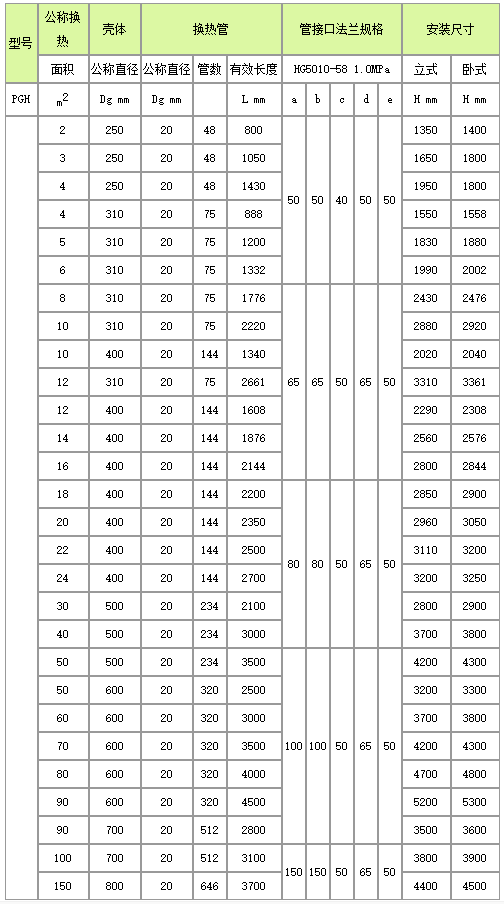 管口使用表: a.介質入口或出口;b.介質入口或出口;c.冷卻水入口;d.冷卻水出口;e.排凈口